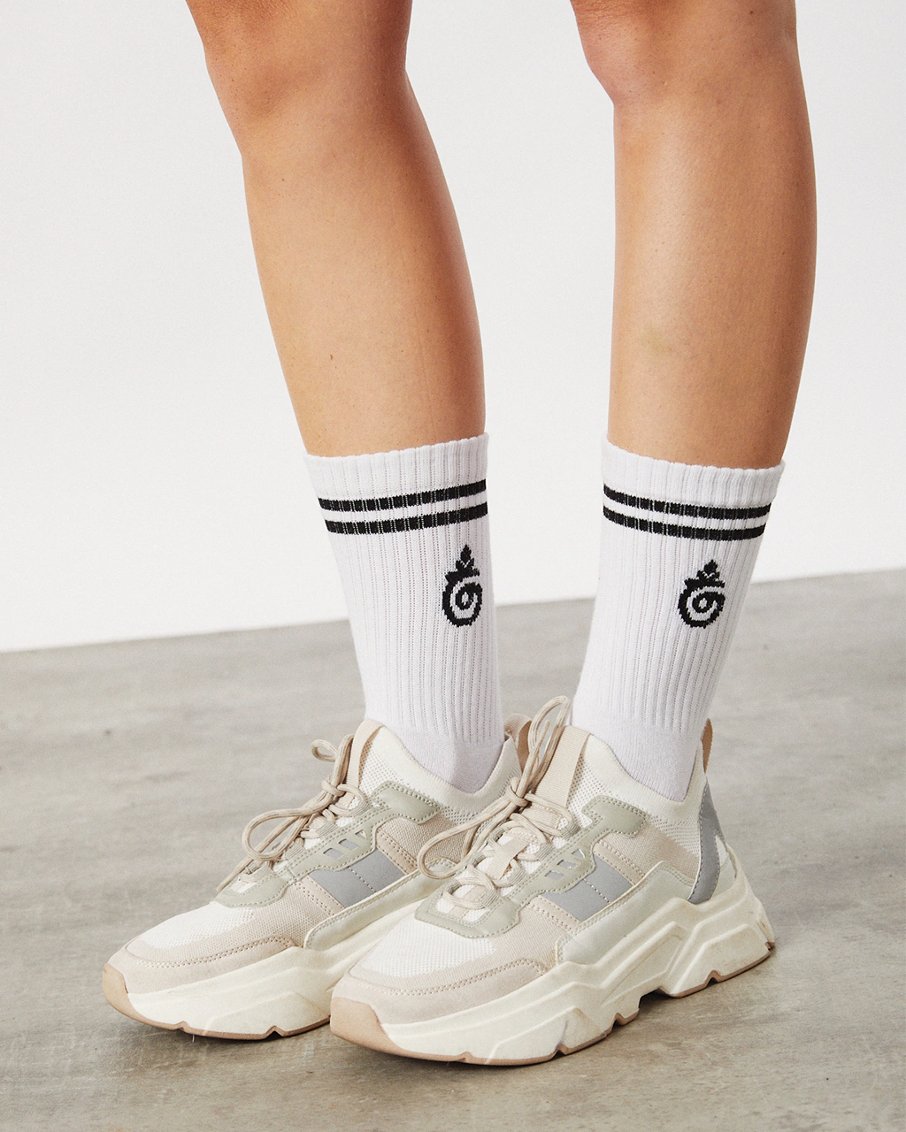 Medias media caña con lineas y logo Gukka en ambos lados